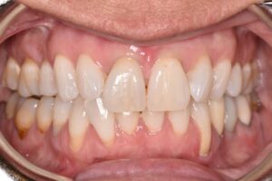 This patient came to us with gum recession, a condition in which the gums pull away from the teeth and expose the roots. Although it may appear to be a cosmetic issue, treating gum recession is medically necessary to prevent root sensitivity, decay, bone loss, and long-term tooth mobility.